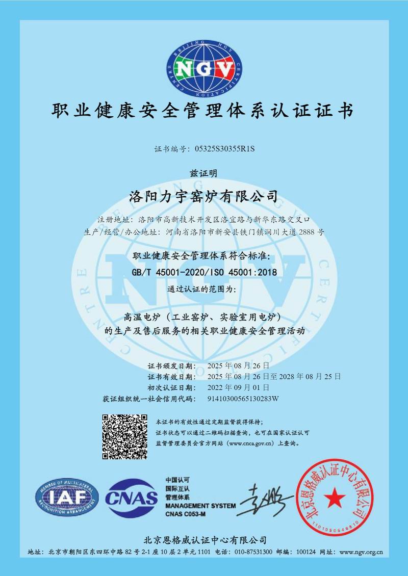 職業健康安全管理體系認證證書